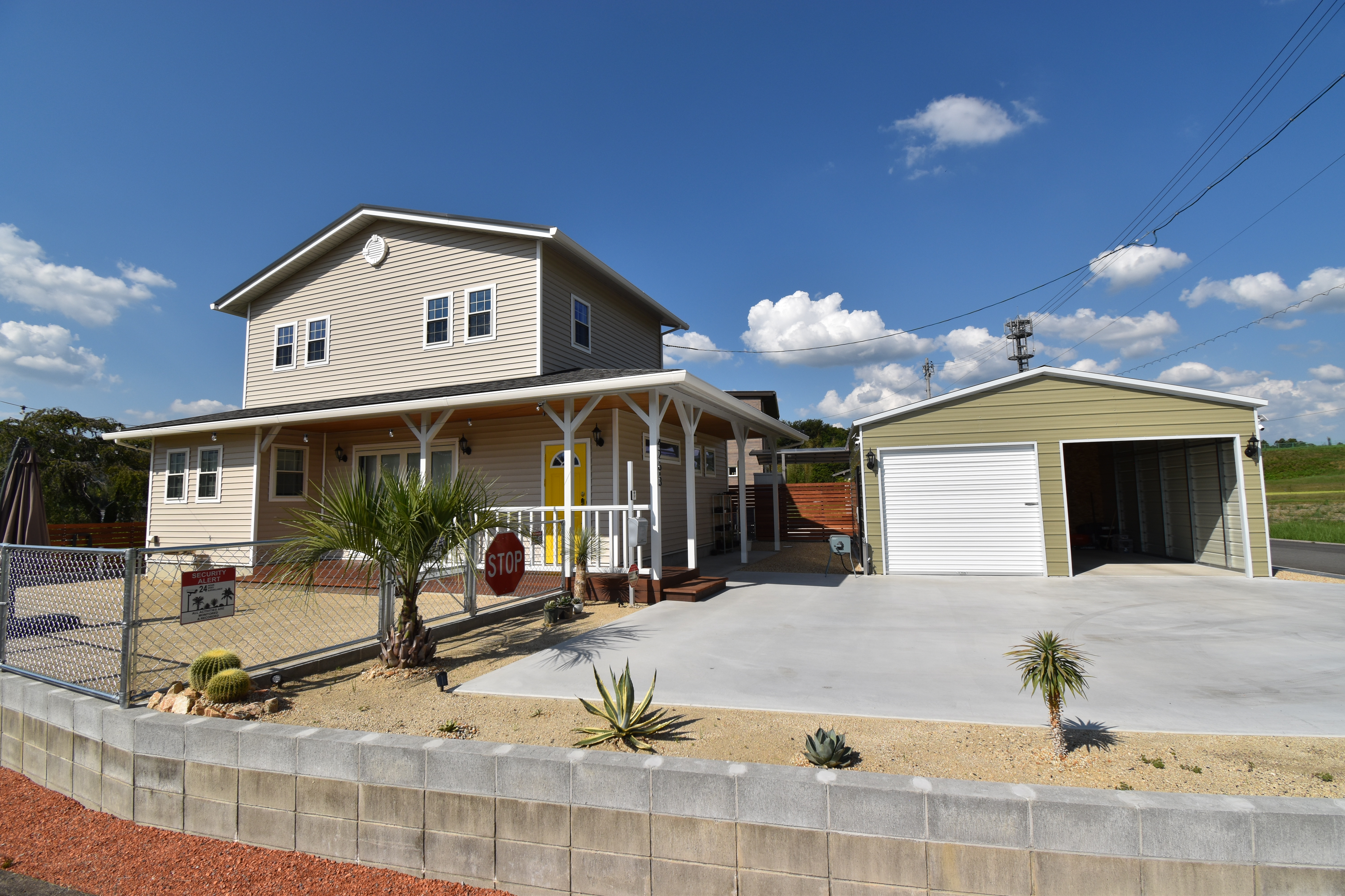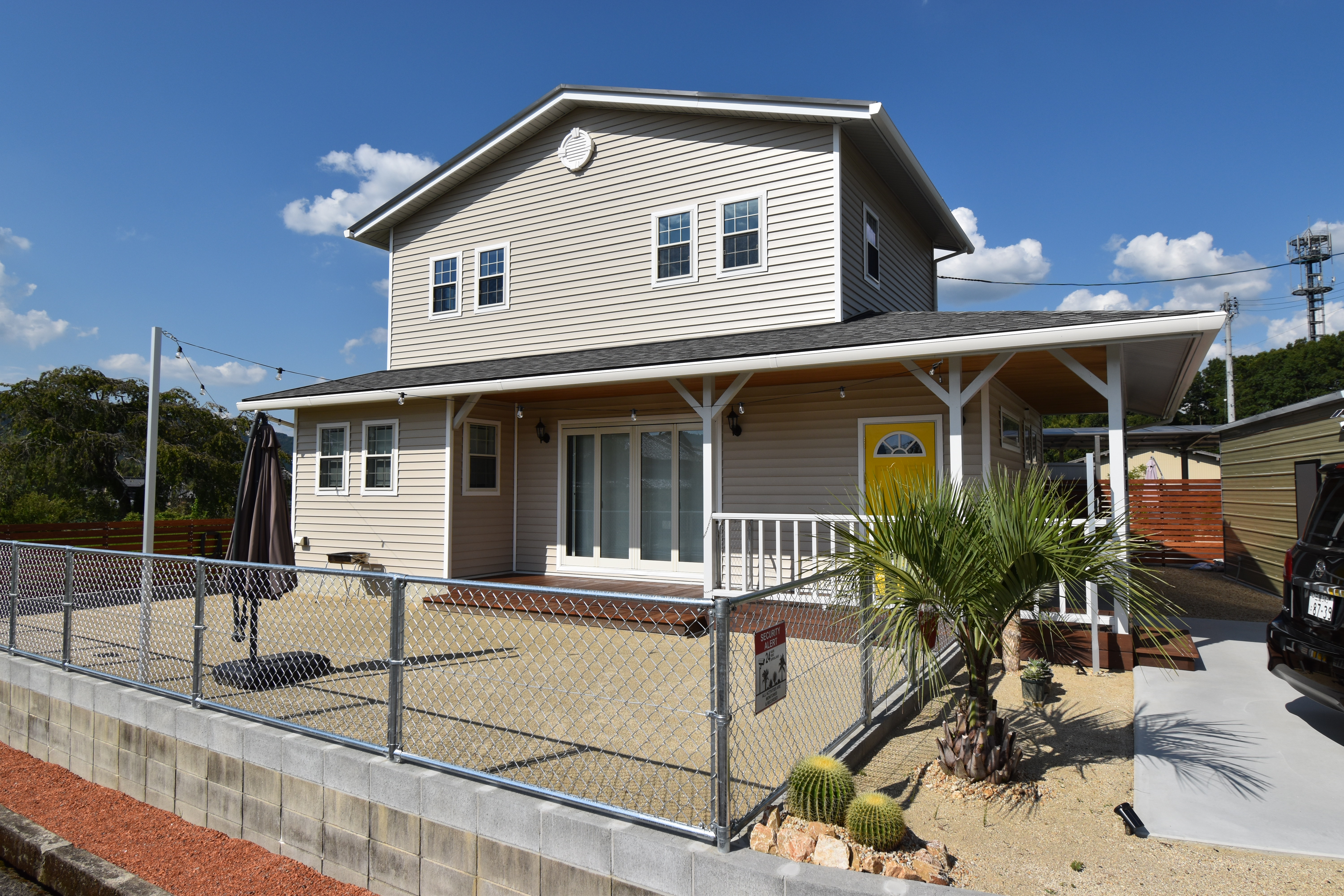明るいベージュの外観に、白いトリムとイエロードアが映える2階建て。開放感あふれるポーチは、家族の団らんやお子さまの遊び場にぴったり。独立型ガレージやフェンス付きの敷地など、暮らしやすさと安心を両立した設計です。手間のかからないドライガーデンも魅力のひとつ。家族の毎日を心地よく包む、カリフォルニアスタイルの住まいです。